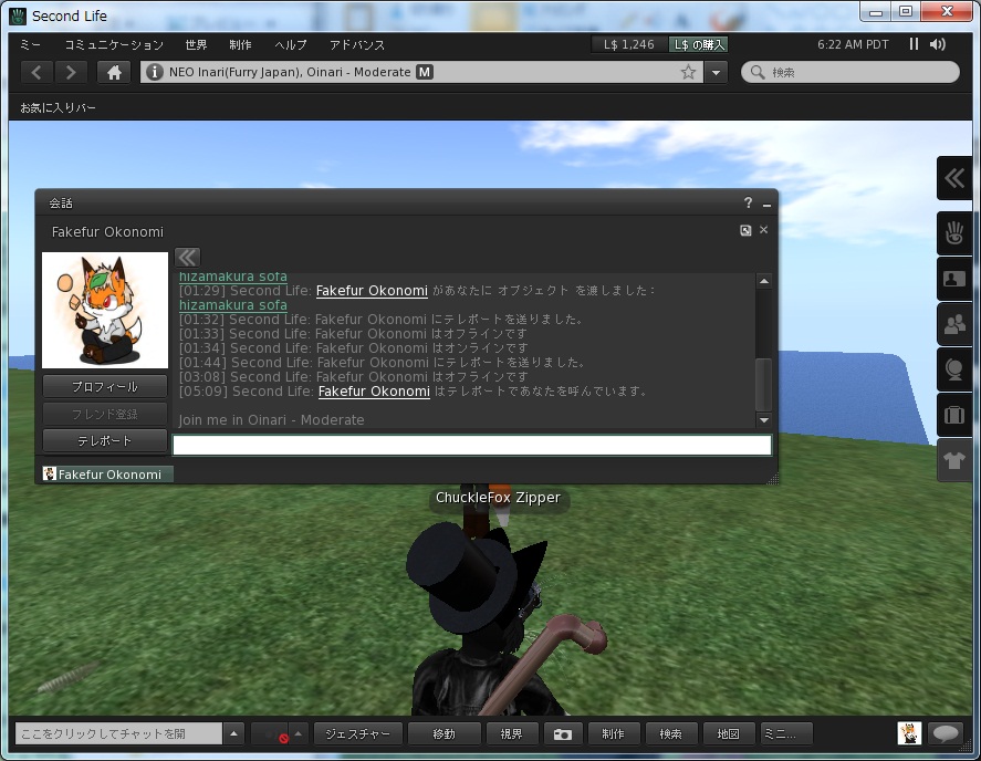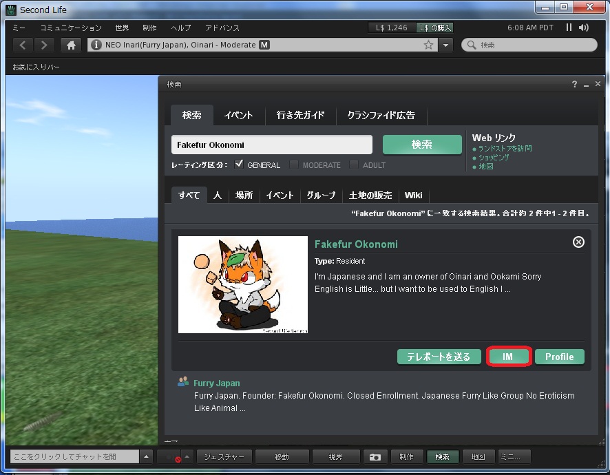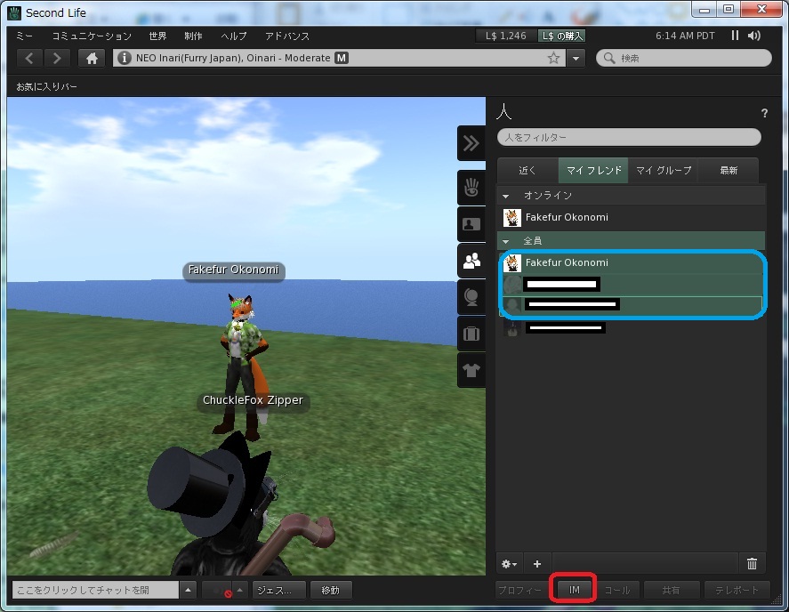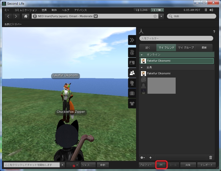 ここでIMボタンを押すと、IMチャット用のウインドウが開きます。