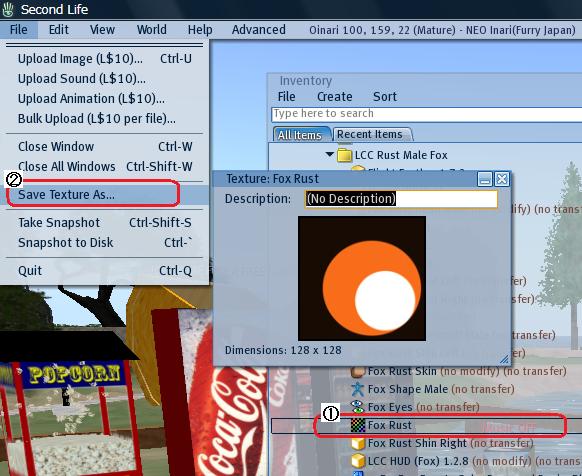 (通常は[Save Texture As...]は選択できず、フルパーミッションの物であれば有効になるようです。)