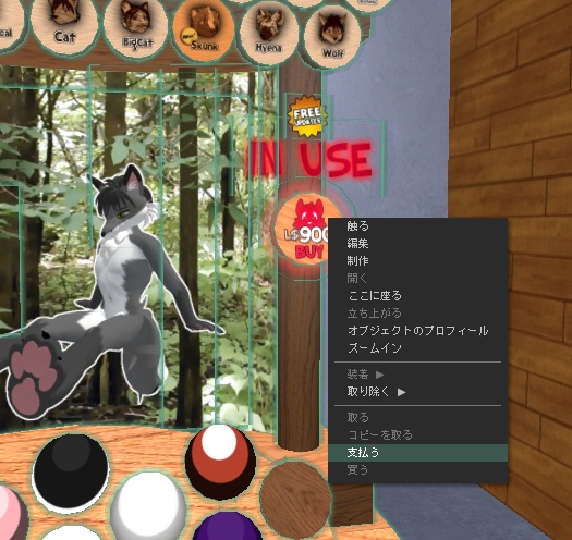 欲しいアバターの種類が決定したら、「BUYボタンを右クリック」して支払うを選びます。