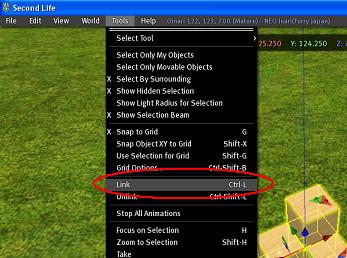 ToolsのLinkを選んでプリムをリンクする。これでリンクされます。