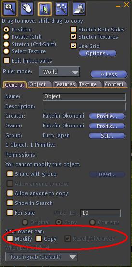 これは購入者がオブジェクトを他の人に渡せたりコピーを許したりする設定の事です。
