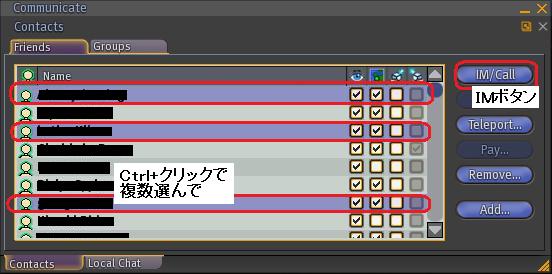1.Communicateのフレンドタグから会話したい人を複数えらんでIMボタン