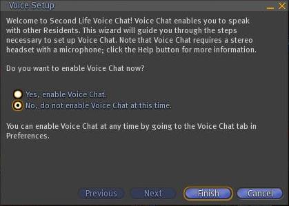 1.SecondLifeを起動するとVoiceChatウイザードが開始されます