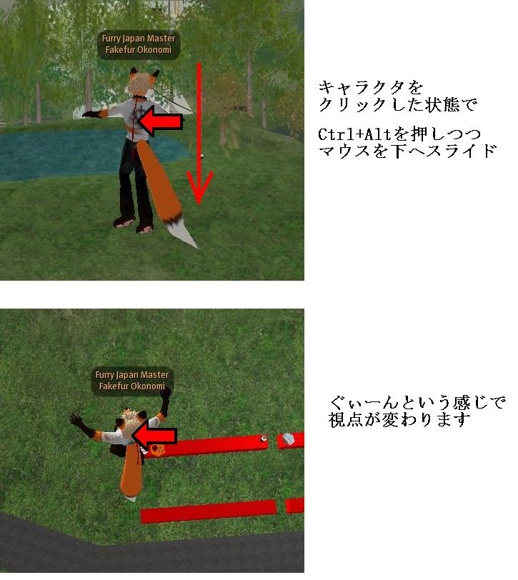視点の切り替えはキャラクタをクリックした状態でCtrl+ALTを押し、マウスを移動すれば