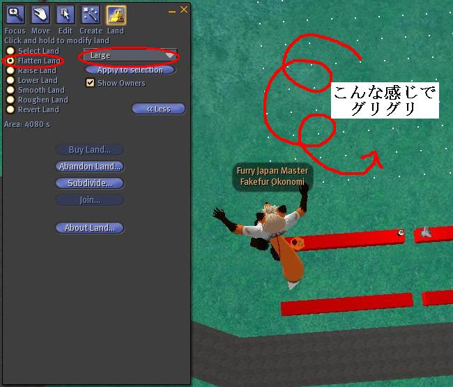 FlattenLandのボタンをえらび、「Apply to selection」を連打!連打!連打っ!!