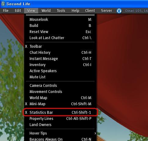 「Ctrl + Shift + 1」を押すか下図のようにメニューバーのViewからStatisticsBarを表示します。